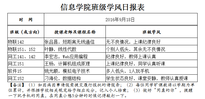 9月18日上课抽查情况通报