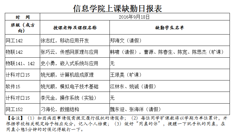 9月18日学生上课缺勤情况通报