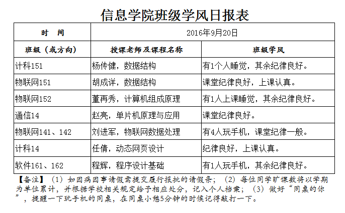 9月20日上课抽查情况通报