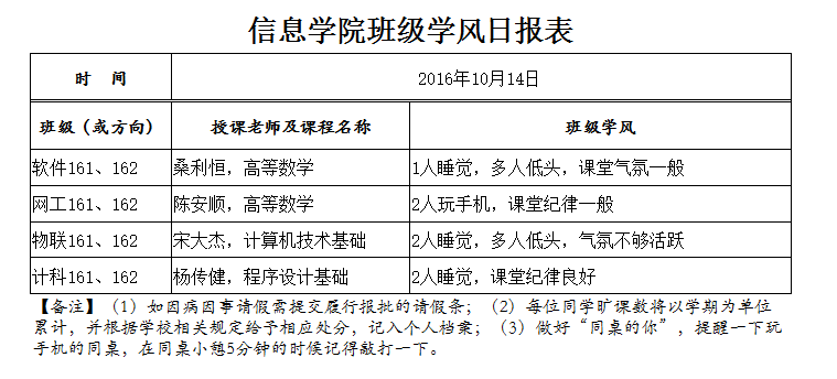 10月14日上课抽查情况通报
