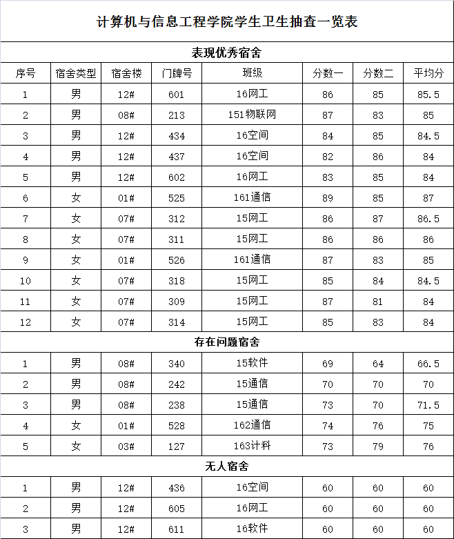 第八周学生卫生抽查情况