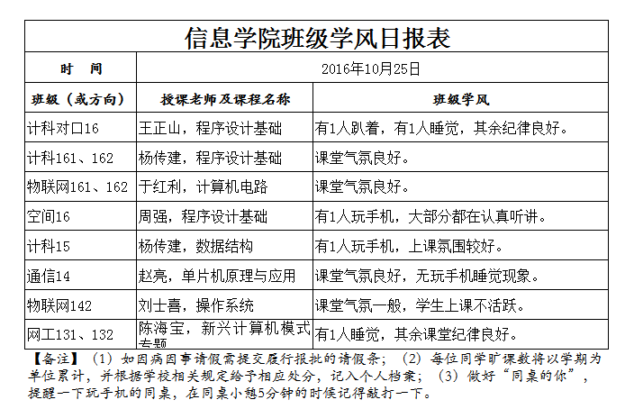 10月25日上课抽查情况通报