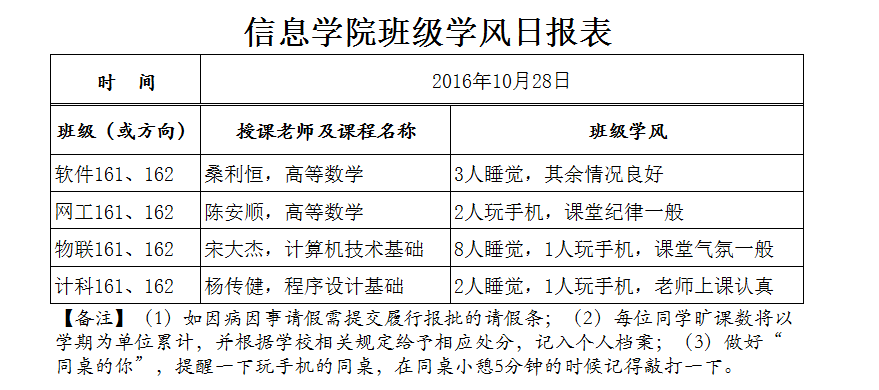 10月28日上课抽查情况通报