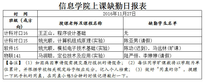11月27日学生上课缺勤情况通报