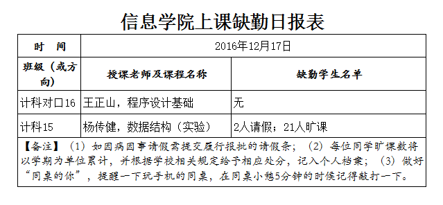 12月17日学生上课缺勤情况通报