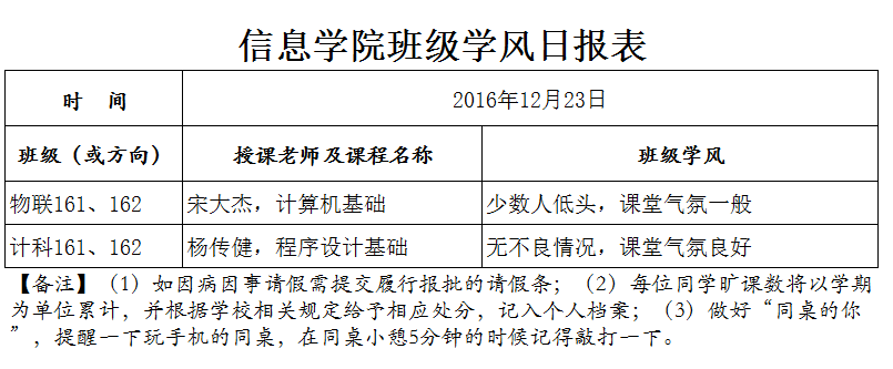 12月23日上课抽查情况通报