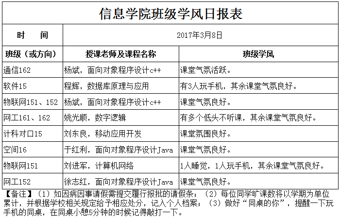 3月8日上课情况通报