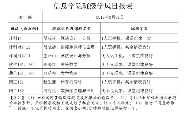 3月21日上课情况通报