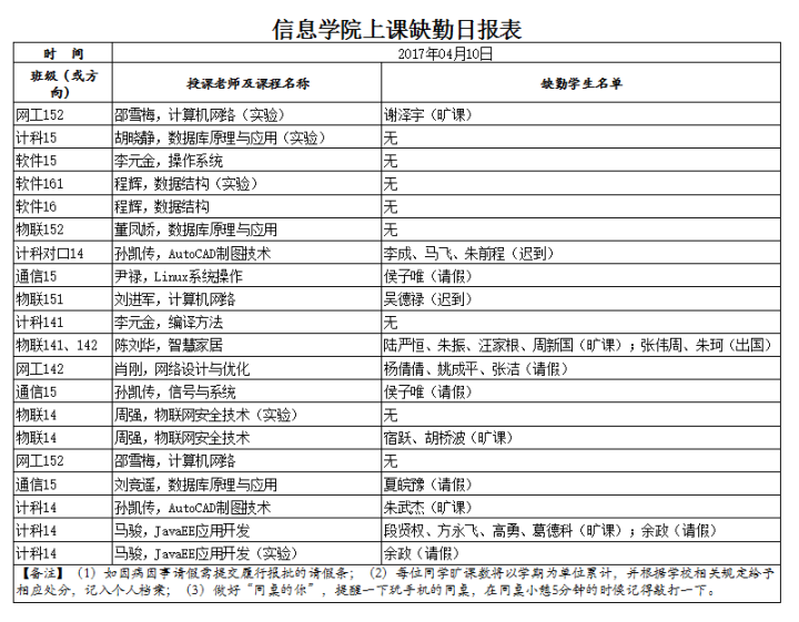 4月10日学生上课缺勤情况通报