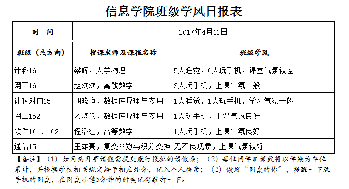 4月11日上课情况通报