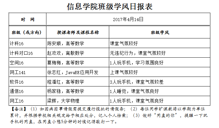 4月14日上课情况通报