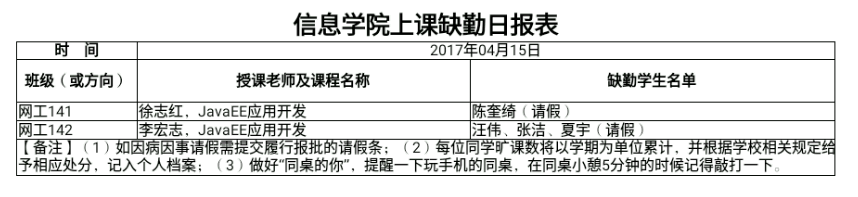 4月15日学生上课缺勤情况通报