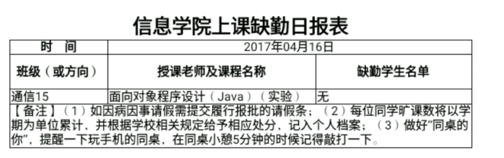 4月16日学生上课缺勤情况通报
