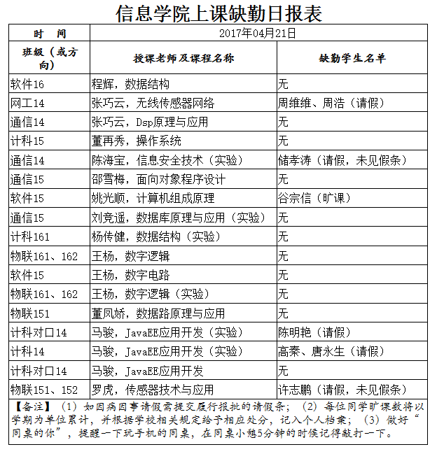 4月21日学生上课缺勤情况通报