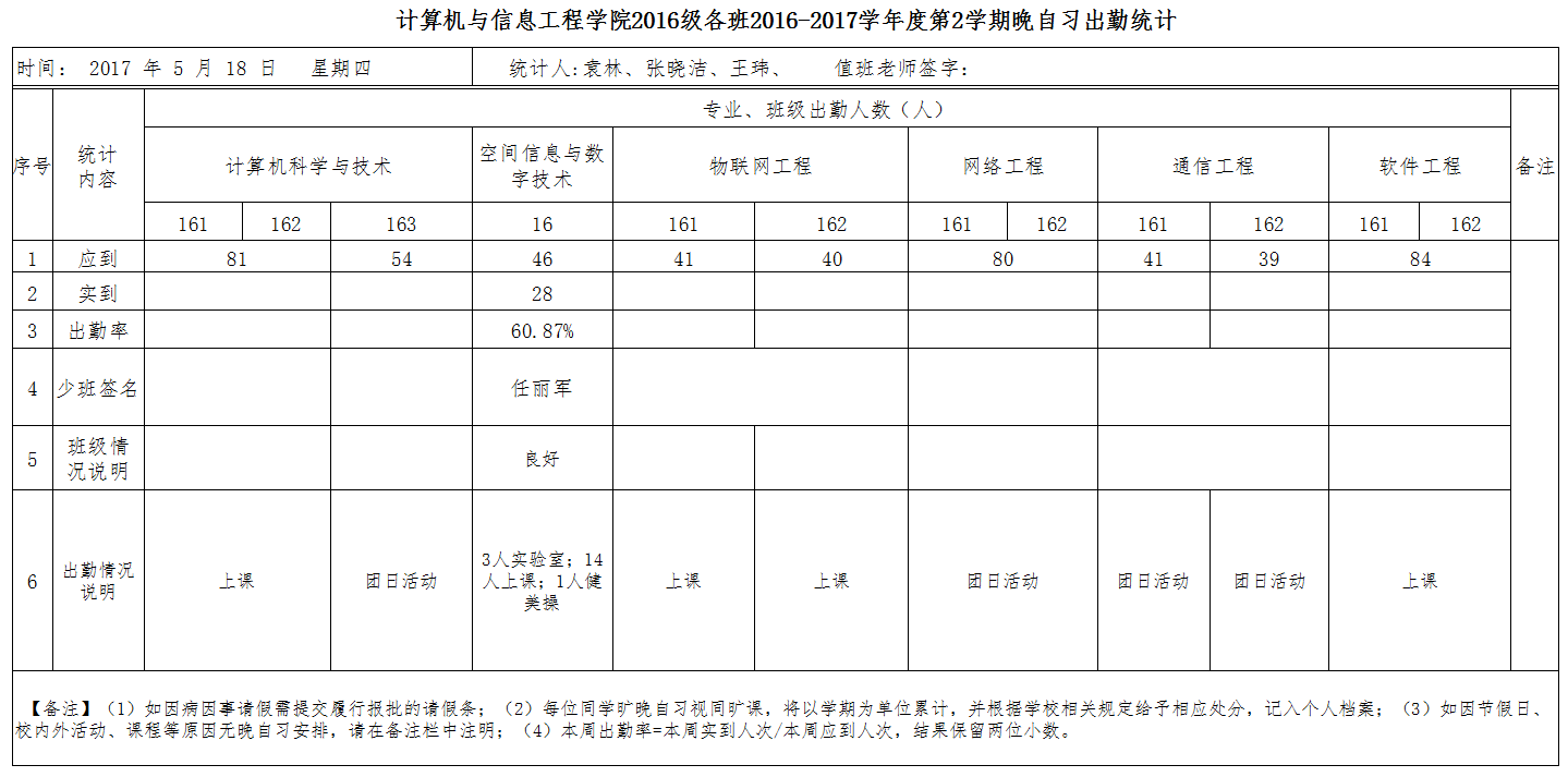 5月18日大一晚自习出勤情况通报