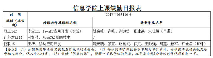 6月10日学生上课缺勤情况通报