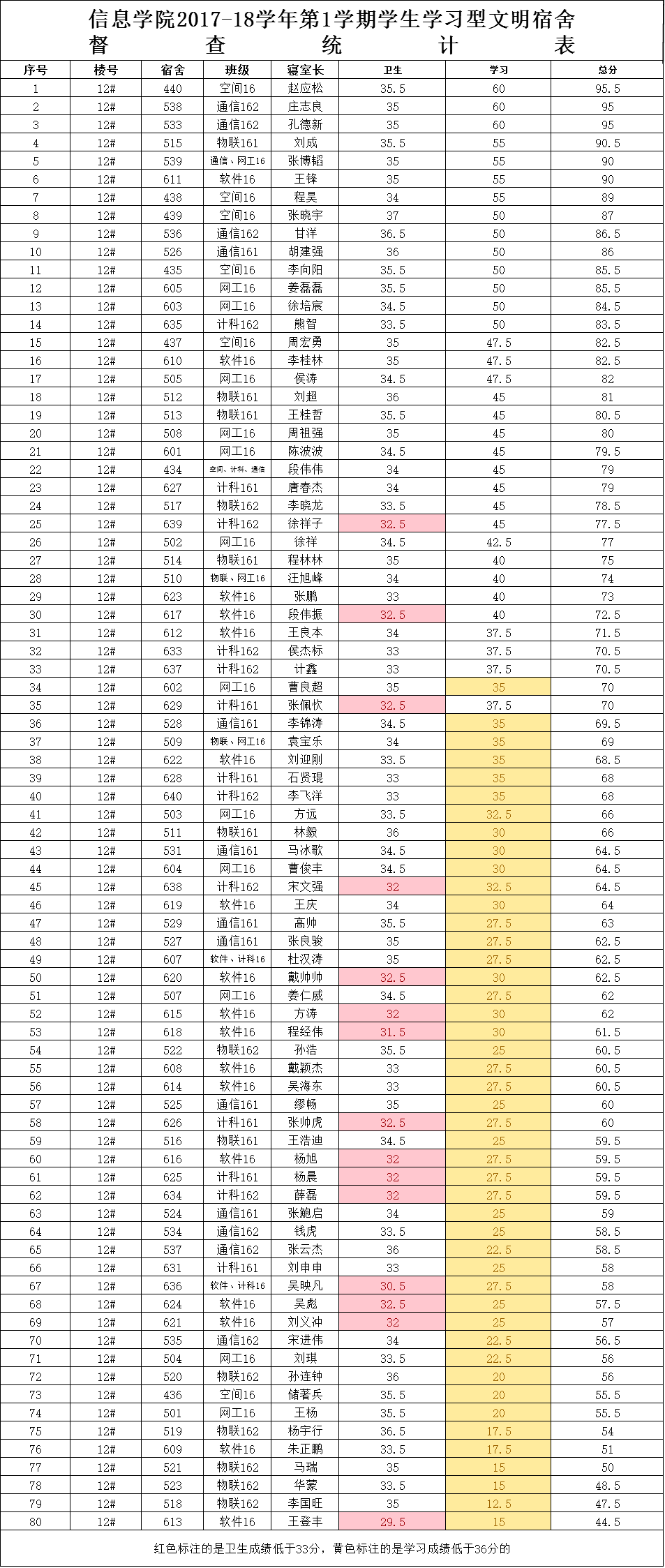 4周2次学习型文明宿舍检查情况通报