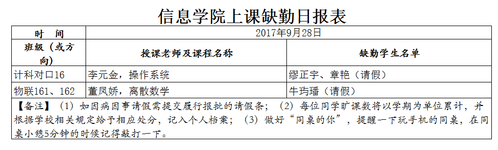 9月28日学生上课缺勤情况通报
