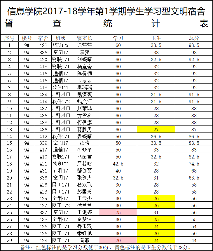 7周2次学习型文明宿舍检查情况通报