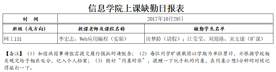 10月29日学生上课缺勤情况通报