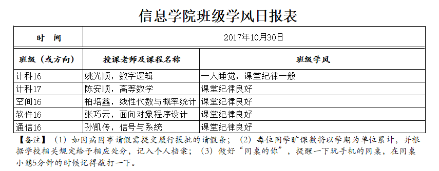 10月30日上课情况通报