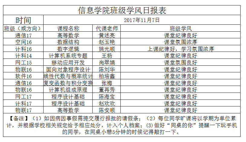 11月7日上课情况通报