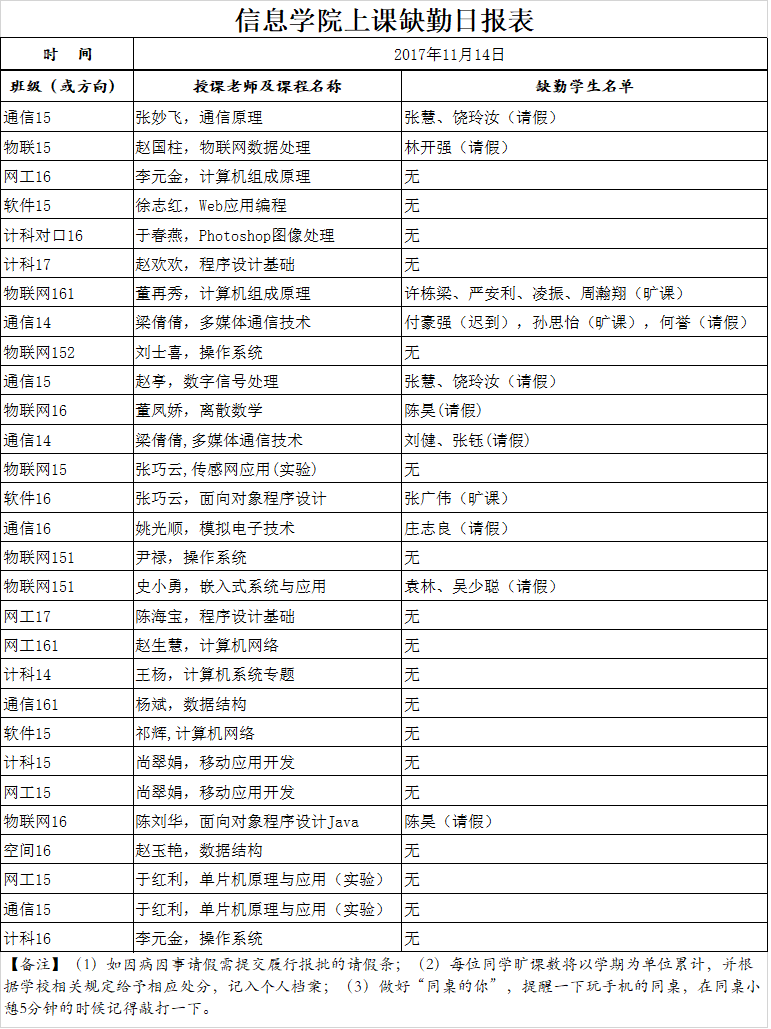 11月14日学生上课缺勤情况通报