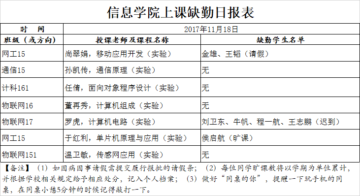 11月18日学生上课缺勤情况通报