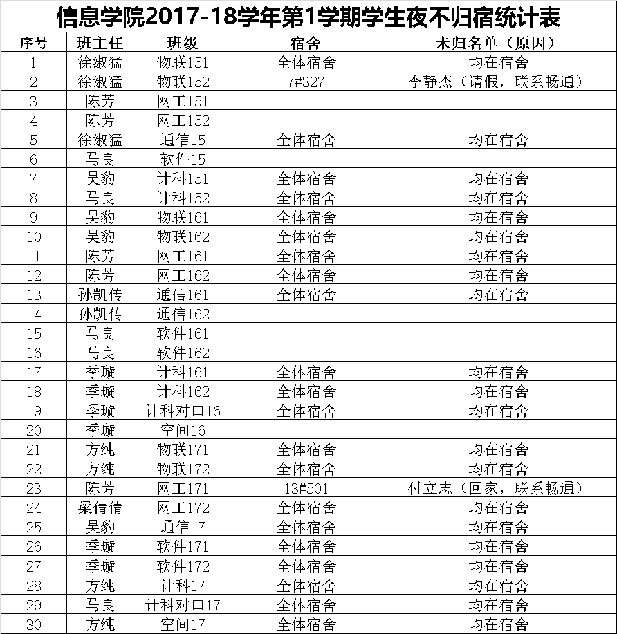 11月19日学生夜不归宿情况通报