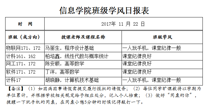 11月22日上课情况通报