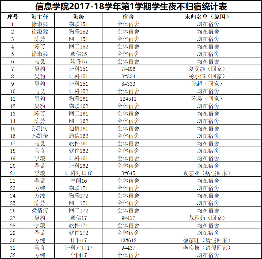 12月4日学生夜不归宿情况通报