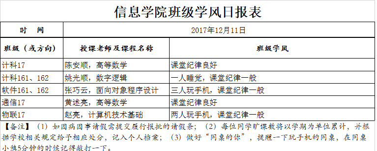 12月11日上课情况通报