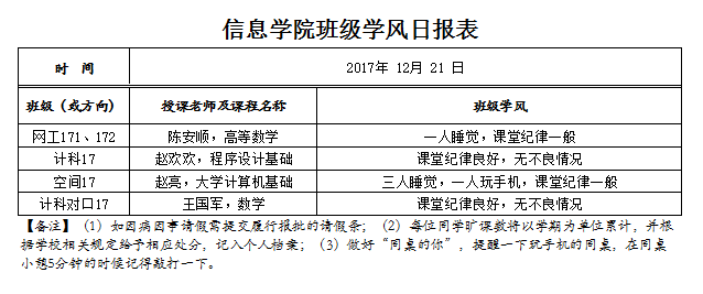 12月21日上课情况通报