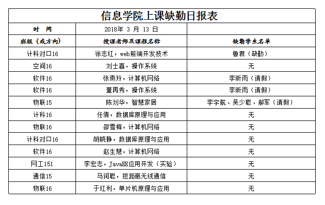 3月13日学生上课缺勤情况通报