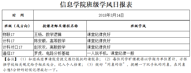 3月14日上课情况通报