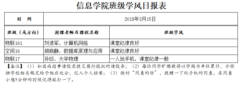 3月15日上课情况通报