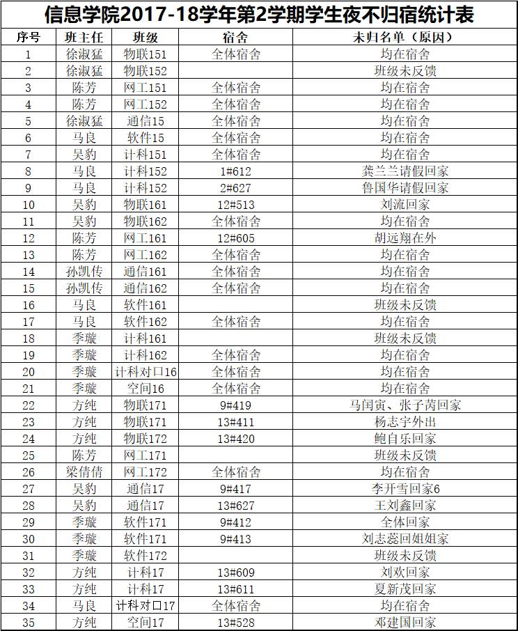 3月17日学生夜不归宿情况通报