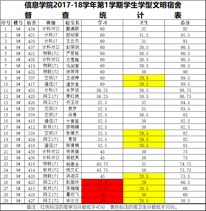2周2次学习型文明宿舍检查情况通报