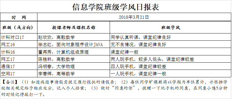 3月21日上课情况通报