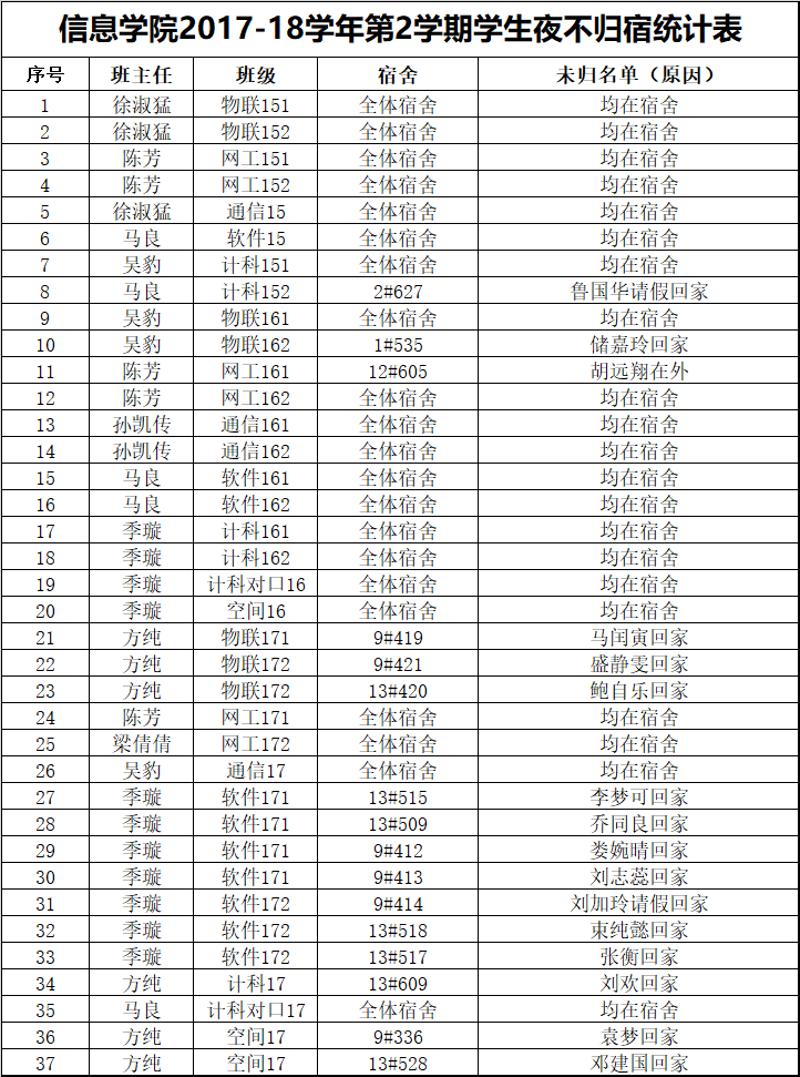 3月23日学生夜不归宿情况通报