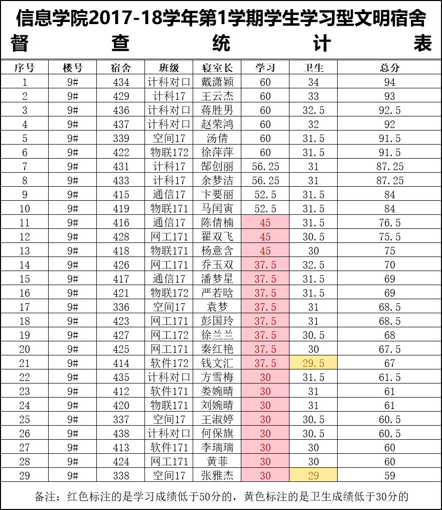 4周1次学习型文明宿舍检查情况通报