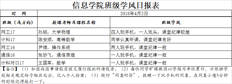 4月2日上课情况通报