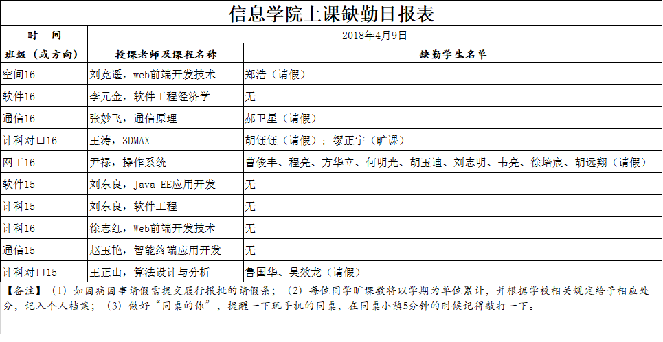 4月9日学生上课缺勤情况通报