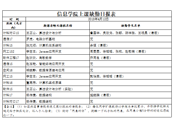 4月12日学生上课缺勤情况通报