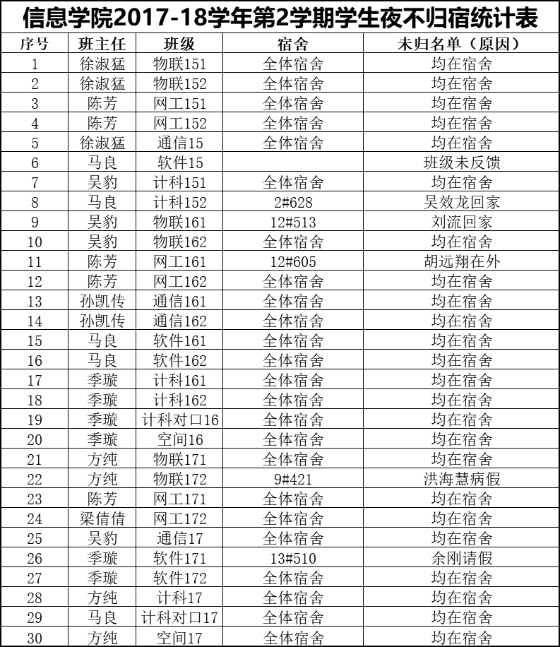 4月22日学生夜不归宿情况通报