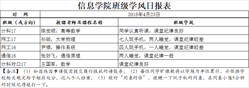 4月23日上课情况通报