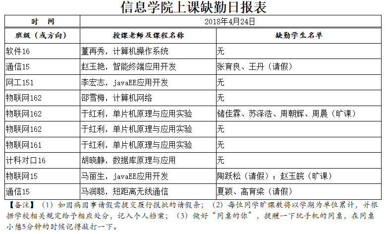 4月24日学生上课缺勤情况通报