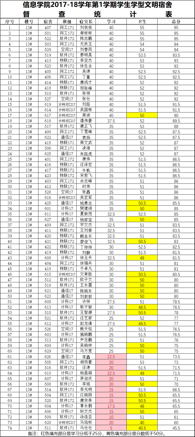 8周1次学习型文明宿舍检查情况通报