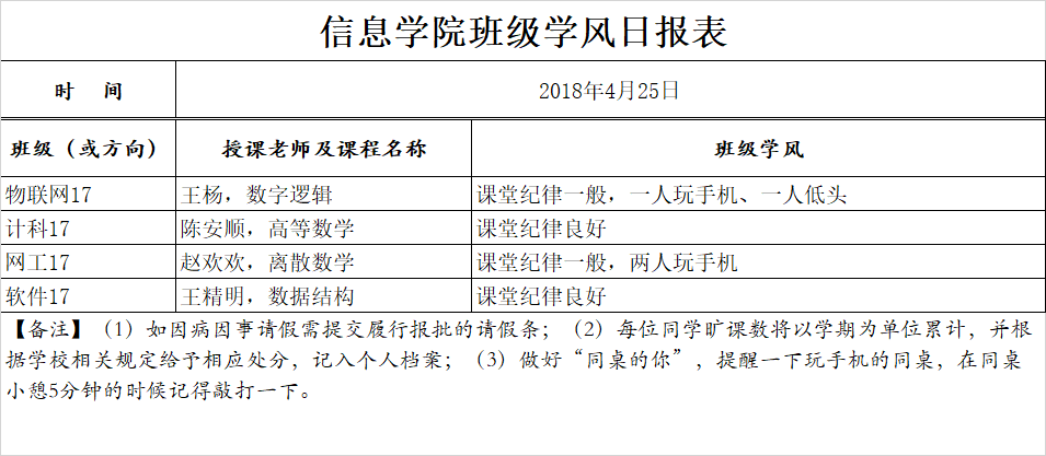 4月25日上课情况通报