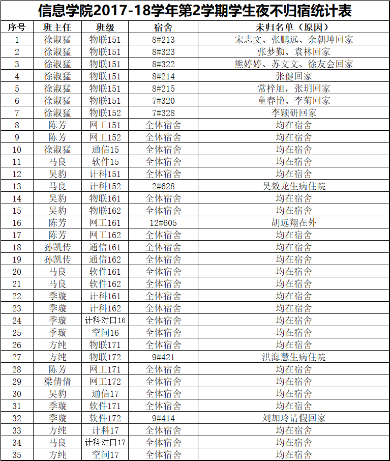 4月27日学生夜不归宿情况通报
